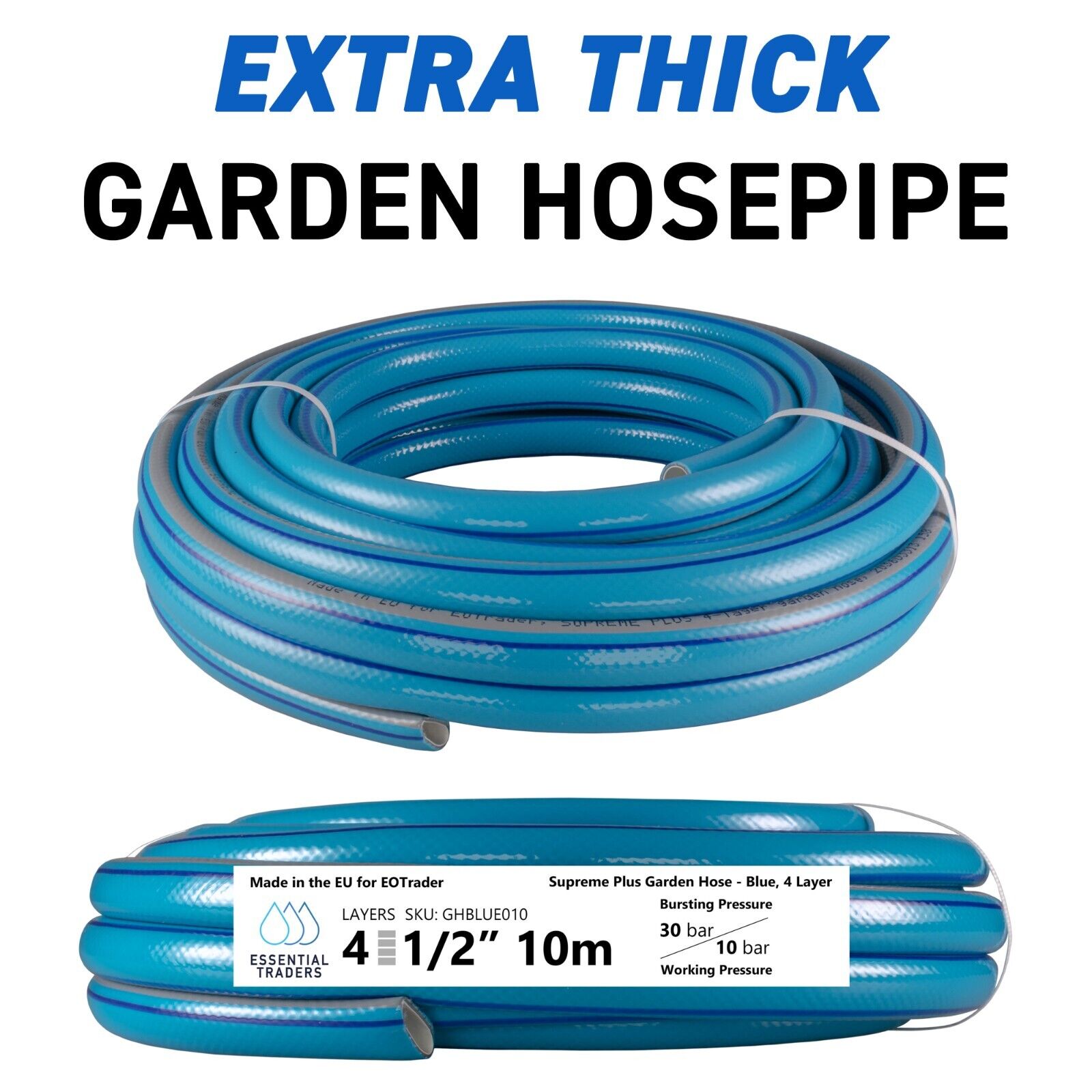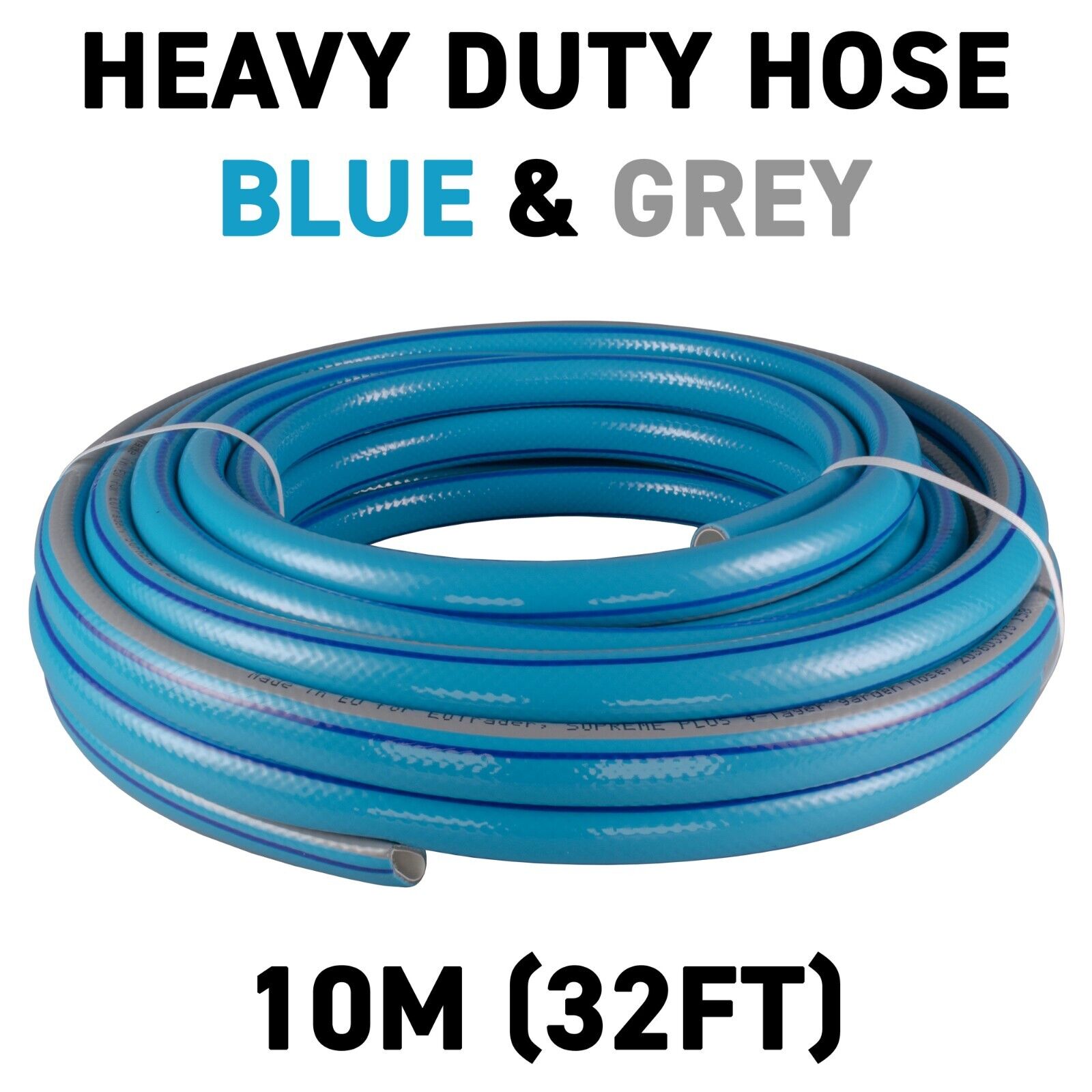 10m Blue Supreme+ 1/2″ Reinforced Garden Hose, 4-Layer