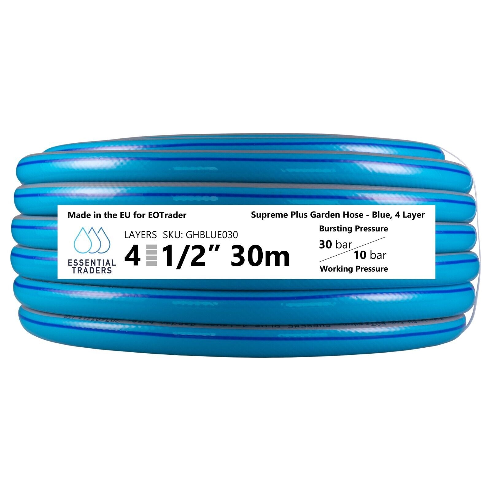 30m Blue Supreme+ 1/2″ Reinforced Garden Hose, 4-Layer