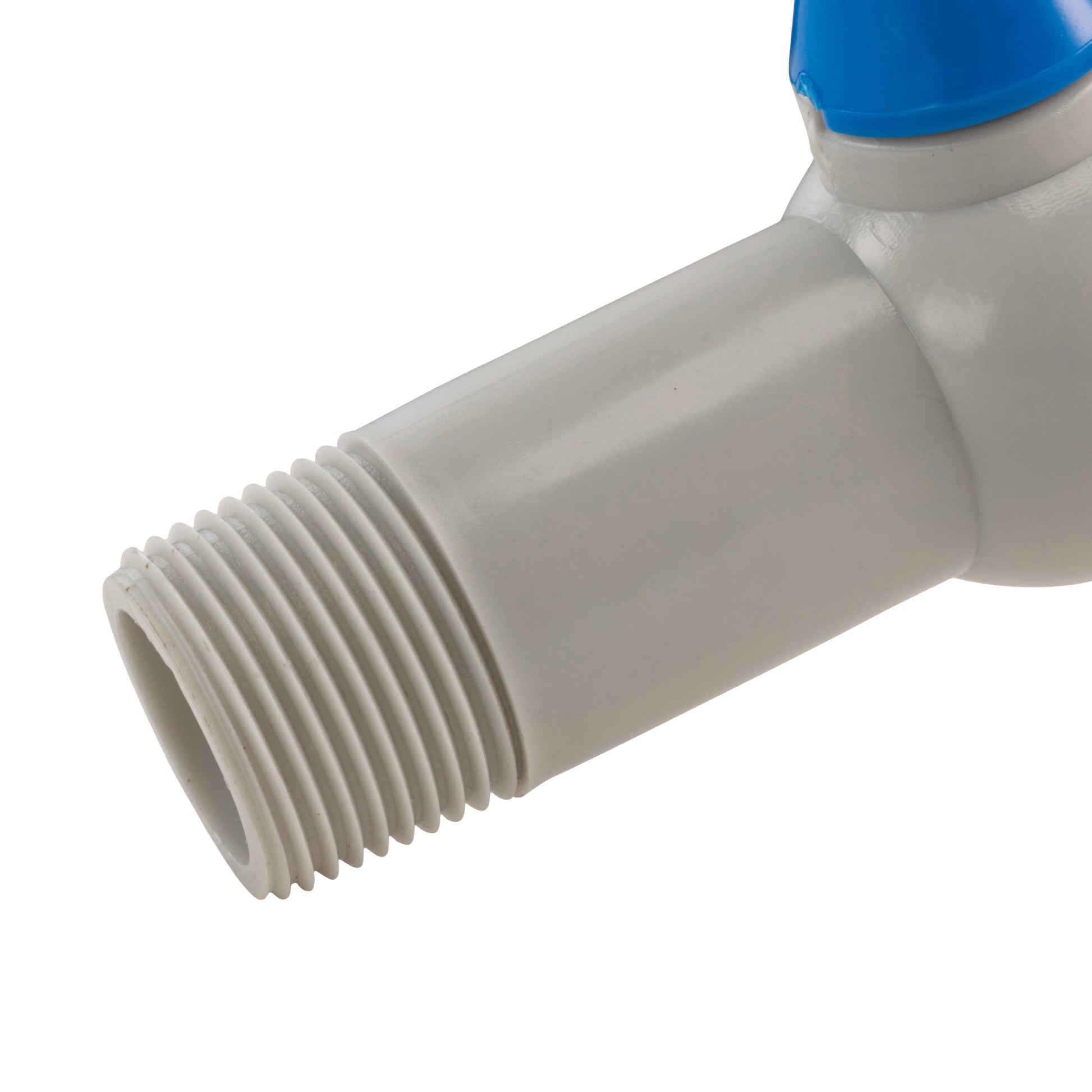 Manufactured from high-grade chemical-resistant plastic, it tolerates acidic or alkaline fluids, UV exposure and temperature swings—perfect for domestic, agricultural or light industrial applications. The bright blue lever handle delivers smooth, one-handed quarter-turn operation, with clear visual indication of on/off status.