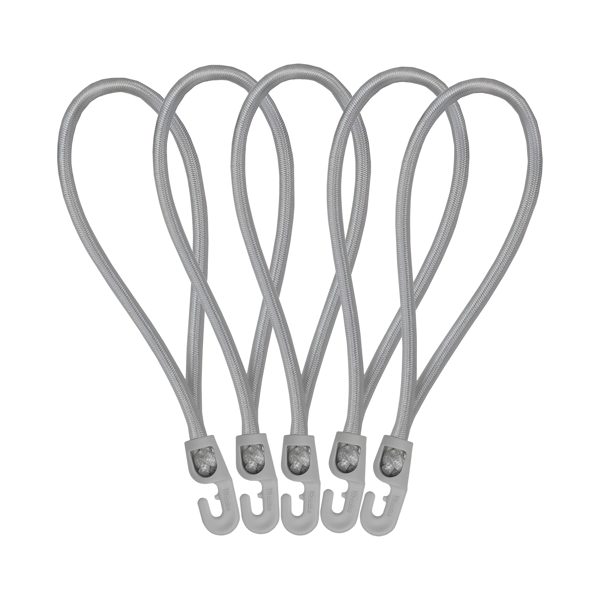 Compact yet resilient, this grey bungee cord with integrated hook combines flexibility and strength. Measuring 18 cm (7.1″) overall at a slim 4 mm diameter, its premium latex core stretches up to 100 % of its length while the tough polypropylene braid resists abrasion and weathering. The robust hook, designed to fit ropes or cords up to 6 mm, is secured with a reinforced knot to prevent slippage, delivering a reliable connection whether you’re fastening camping gear, organising garden tools or securing items for transport. Ideal for tourism, agriculture, home, garden and camping applications, this looped bungee cord is an indispensable tool for both professional and personal use.