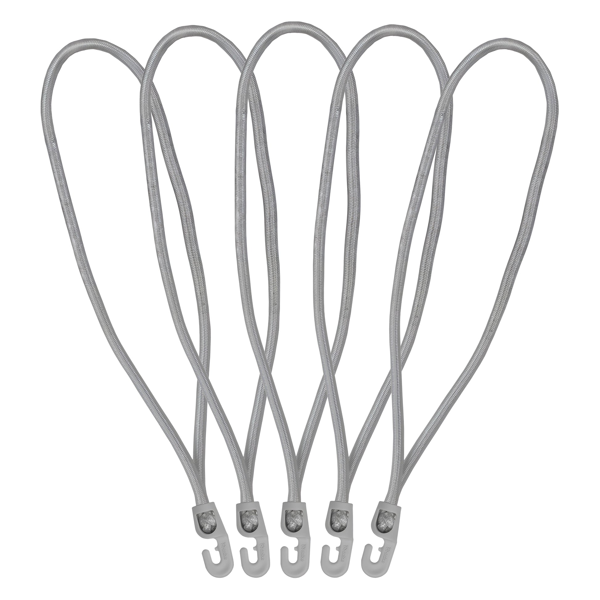 Offering adaptable strength, this grey bungee cord with integrated hook provides a compact yet powerful fastening solution. Measuring 40 cm (15.75″) overall at a slim 4 mm diameter, its premium latex rubber core stretches up to 100 % of its length, while the rugged polypropylene braid resists abrasion and weathering. The sturdy hook—designed to fit ropes or cords up to 6 mm—is secured with a reinforced knot to prevent slippage, delivering a reliable connection whether you’re securing camping kit, organising garden tools or stabilising loads for transport. Ideal for tourism, agriculture, home, garden and camping tasks, this looped bungee cord combines strength, stretch and simplicity in one essential tool. Available in pack sizes of 1, 2, 4, 6, 8, 10 or 20 to suit all project needs.