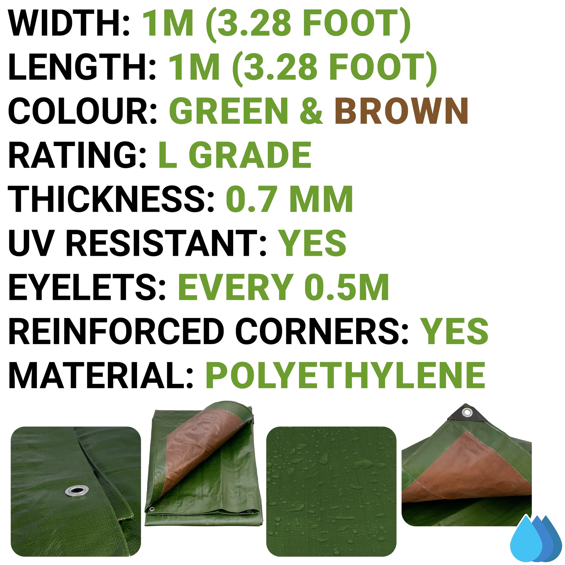 1m x 1m Green & Brown Tarpaulins, L-Grade 220 GSM
