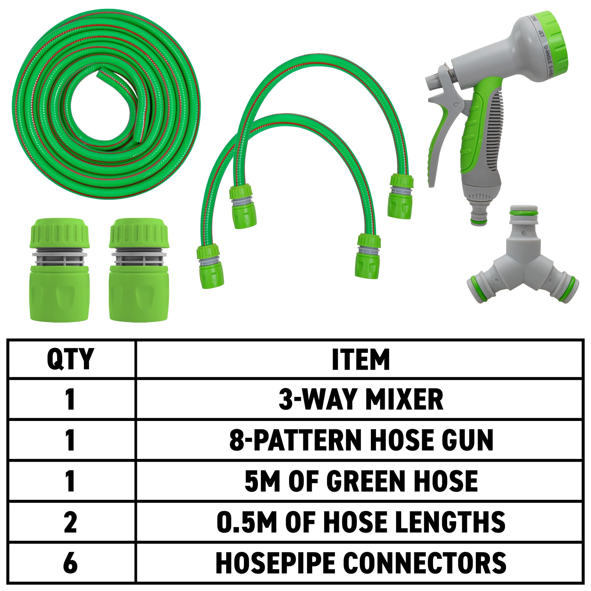 Convert any garden tap into a bespoke pet-washing station with this all-plastic Dog & Pet Shower Kit. The Y-shaped 3-way splitter attaches to both hot and cold taps via click-lock fittings, blending water to your perfect temperature before it flows through the 5 m premium green hose. Crafted from UV-stabilised, kink-resistant PVC reinforced with an internal textile braid, the hose delivers steady pressure and extends your reach for fuss-free outdoor washing.