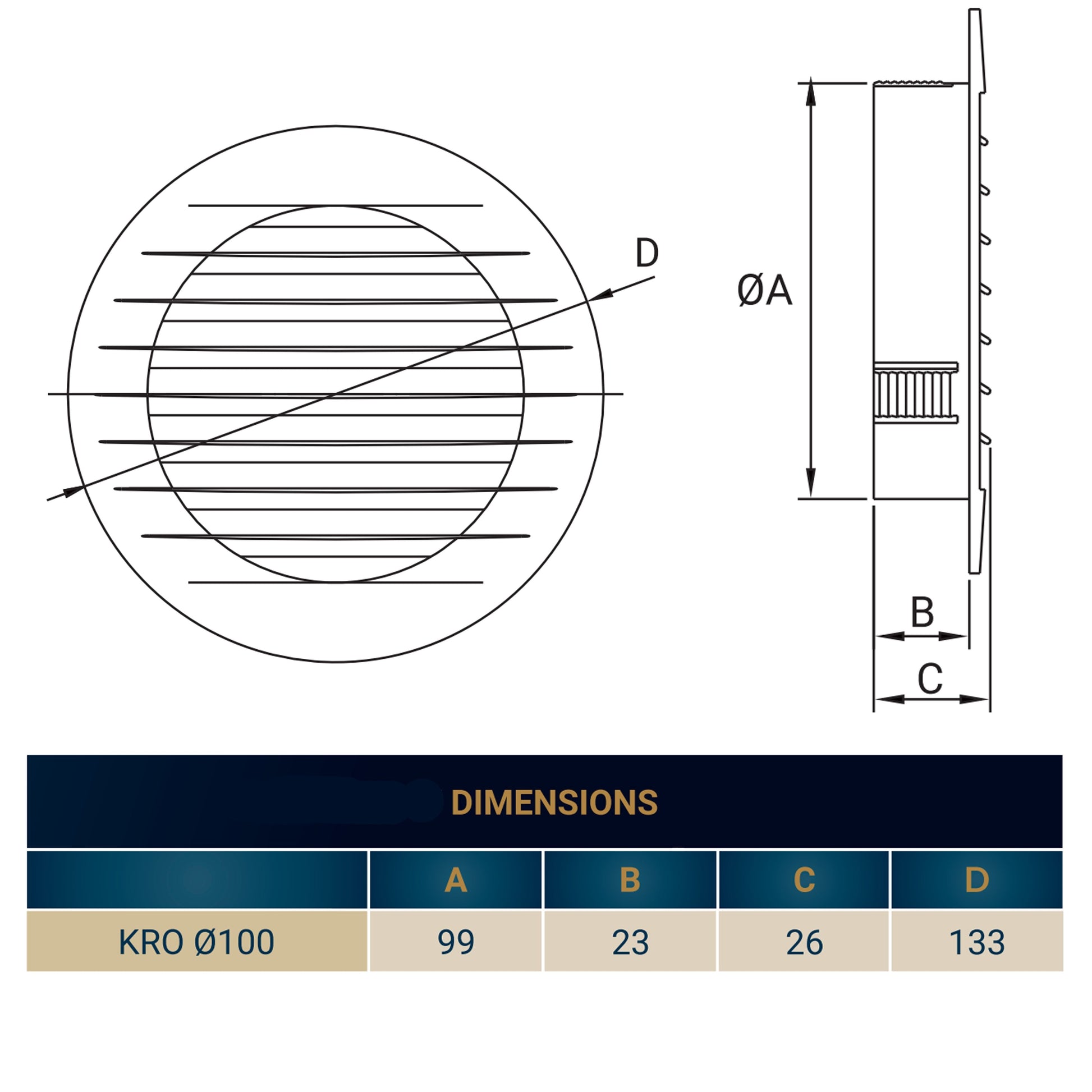 Boasting a compact 100 mm (3.94″) diameter, this circular louvre vent with integrated fly mesh delivers unobtrusive yet powerful ventilation for walls, ceilings or doors. Crafted from UV-stabilised, corrosion-resistant plastic, it withstands both indoor and outdoor conditions, ensuring reliable performance year after year.